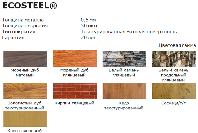 Полный спектр можно посмотреть в разделе Цветовая гамма металла