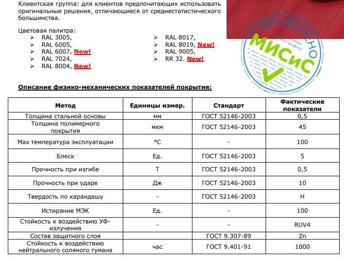 Толщина покрытия составляет 45 мкм. Это почти в 2 раза больше чем в стандартном покрытии полиэстер.