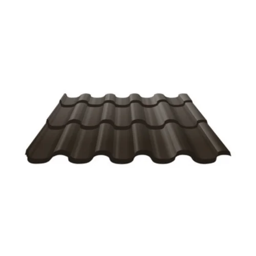 | Клауди | Под натур. черепицу 2-х цветный (темно-светло коричневый) | 0,5мм | 35мкм | Zn 140 гр/м2 | 15 лет | полуматовый |
