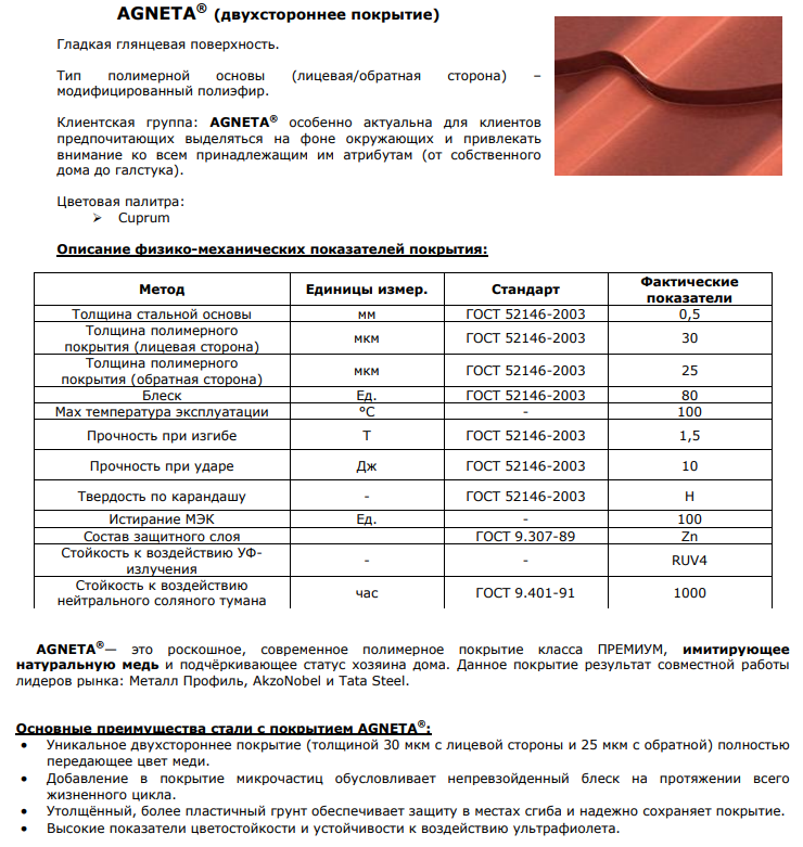Толщина покрытия: 30мкм лицевая сторона + 25мкм обратная сторона
