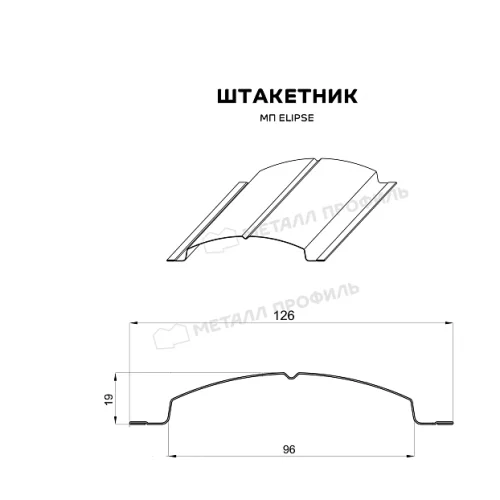 Штакетник Эллипс — самый крупный вид металлического штакетника с завальцованными краями. Он выполнен в форме полукруга с канавкой посередине, которая усиливает жёсткость штакетника и придаёт ему интересный вид. Благодаря своей эстетике, ограждение из такого профиля выглядит выразительно.