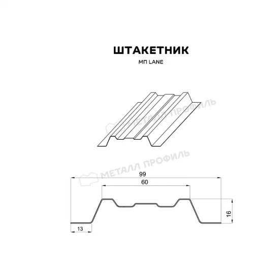 МП Lane – самый узкий и экономичный профиль металлического штакетника с трапециевидным рельефом и дополнительными рёбрами жёсткости. Его кромки не завальцованы ― будьте аккуратны при монтаже и эксплуатации.