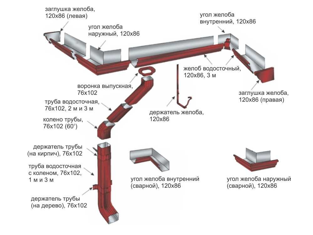 Водосточная система Круглого сечения и Прямоугольного сечения: Элементы