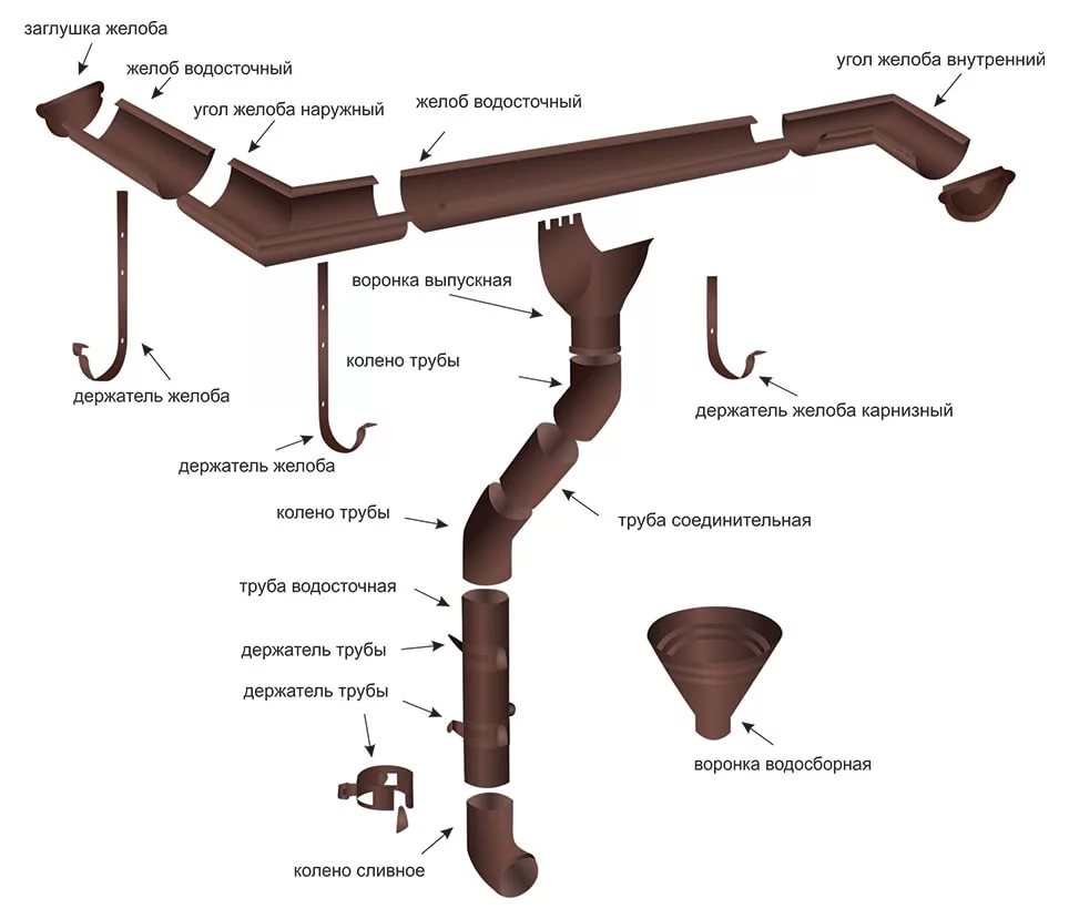 Водосточная система Круглого сечения и Прямоугольного сечения: Элементы